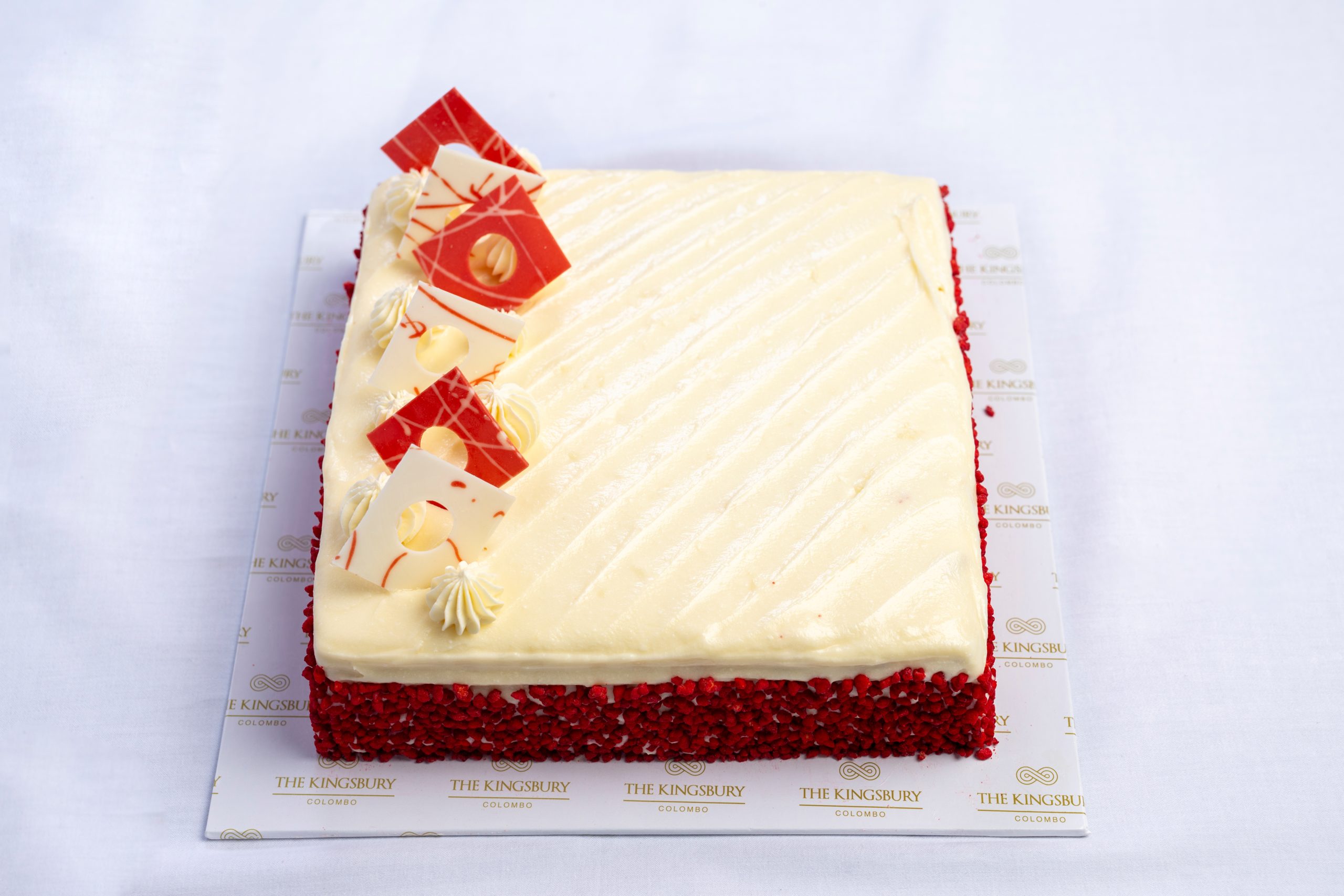 Red Velvet Sponge Cake Layered with Cream Cheese.