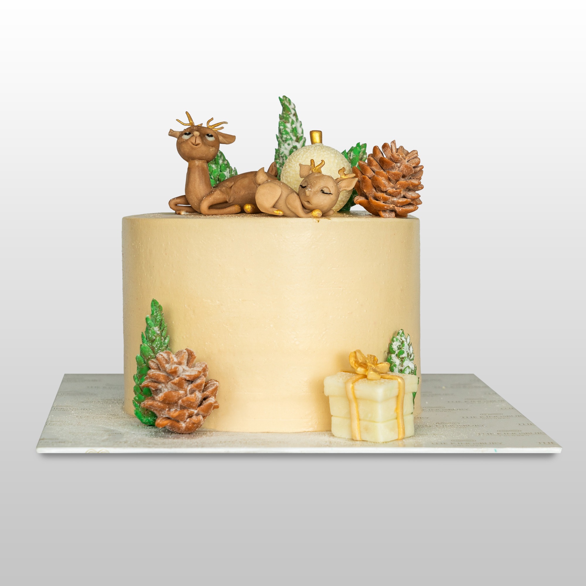 A colourful ribbon cake featuring charming reindeer on top. Soft, fluffy and made for gifting and celebrations. 1kg.
