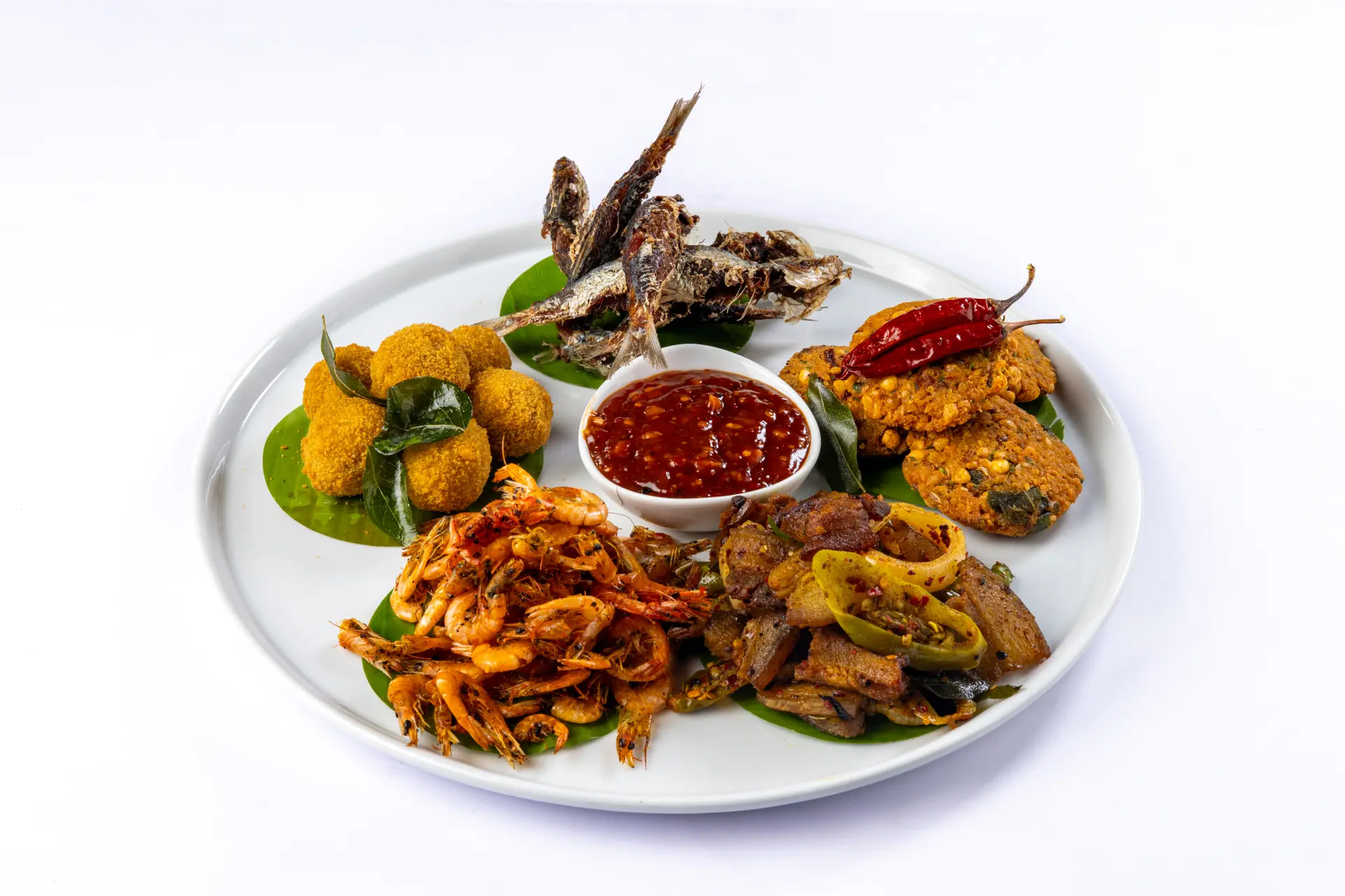 Fish Cutlet | Maldive Fish Wade | Pork Badum | Fried Fish | Fried Jaffna Prawn, Served with Tomato Sauce & Devilled Sauce